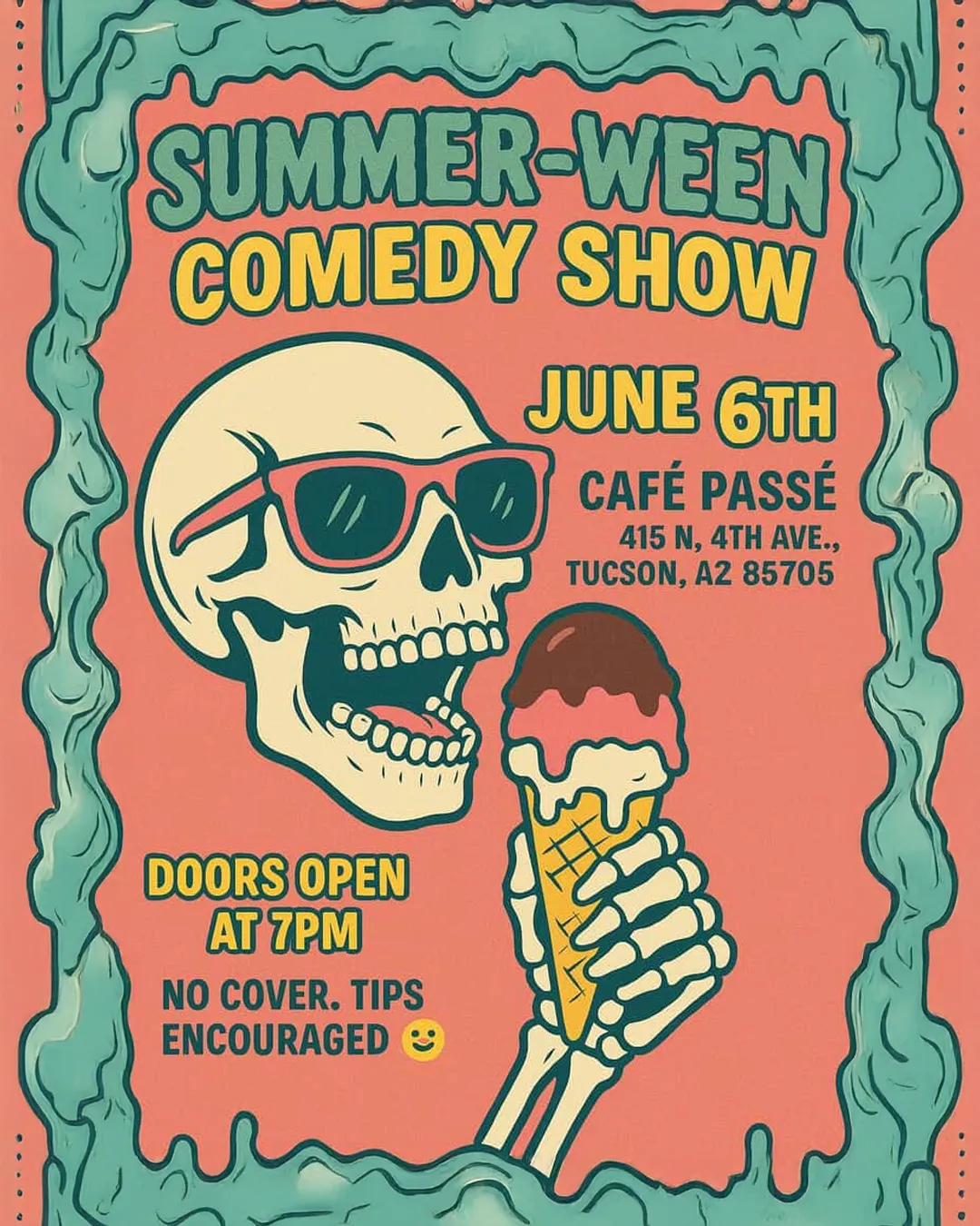 Get spooky and silly at Cafe Passe on June 6th at 7PM for a one-of-a-kind Summer-Ween Comedy Show!